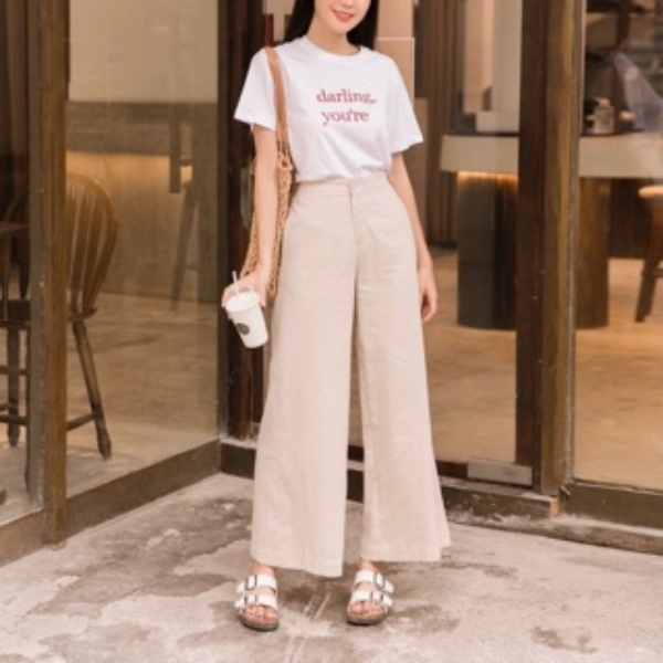 1. Phối quần lửng, áo thun dài tay và túi canvas