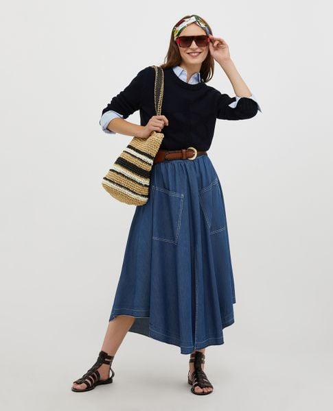 Một chiếc đầm jean hai dây dáng chữ A có thể cân mọi vóc dáng cho các bạn nữ. Thiết kế cổ điển này giúp che đi phần bụng mỡ và rất phù hợp với các cô nàng có vóc dáng hình quả lê.