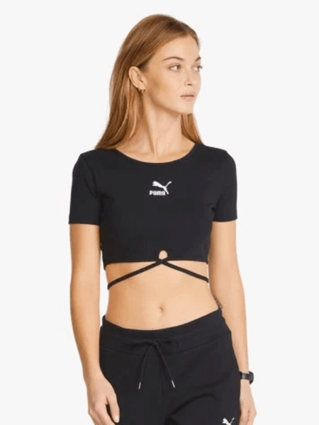 Học ngay những cô em trendy cách diện những chiếc áo croptop cùng với quần cạp trễ để khoe vòng eo con kiến. Mẫu áo croptop tay ngắn thắt dây cá tính Classics Ribbed của thương hiệu Puma khiến chị em mê mẩn bởi sự độc đáo trong cách thiết kế.