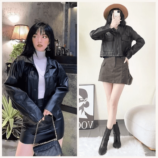 Mix jacket da với chân váy ngắn và giày boots là outfit lý tưởng cho những cô nàng có vóc dáng nhỏ nhắn. Outfit này tập trung vào jacket da, một món đồ linh hoạt có thể phối đồ tốt và giữ ấm cho bạn trong mùa đông. Ngoài ra nếu bạn diện một bộ outfit như thế này thì chắc hẳn bạn còn là một cô nàng đam mê với cá tính mạnh mẽ.