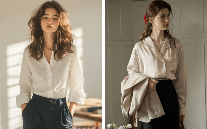 Bạn có thể lựa chọn từ nhiều kiểu cổ khác nhau như cổ tròn, cổ bẻ hoặc cổ chữ V. Với những thiết kế này, bạn có thể kết hợp áo sơ mi cho nhiều mục đích khác nhau mà vẫn giữ được tinh thần của phong cách Classic.