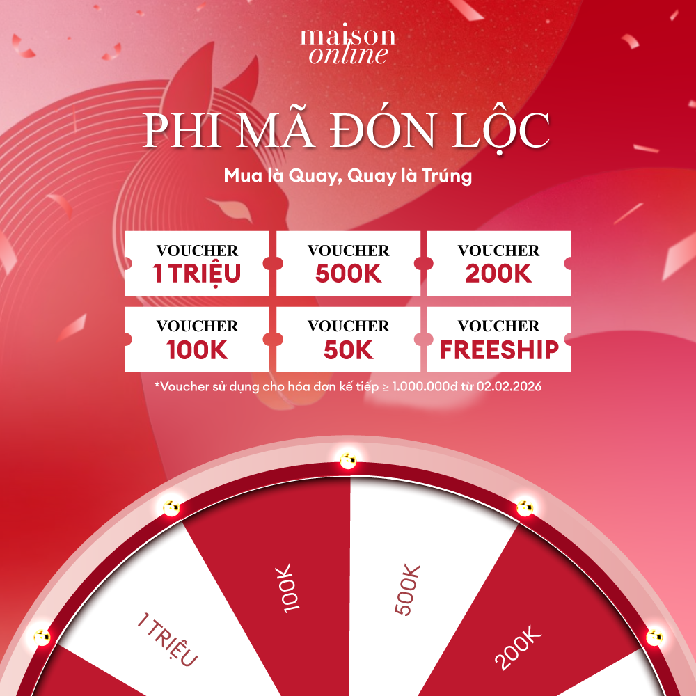 Từ 2.2.2026, với mọi hóa đơn mua hàng bất kỳ tại Maison Online, bạn sẽ nhận ngay lượt quay may mắn với cơ hội trúng 100% các phần quà lì xì giá trị: 🧧 Voucher cực phẩm trị giá: 1.000.000 VNĐ | 500.000 VNĐ | 200.000 VNĐ | 100.000 VNĐ | 50.000 VNĐ 🚚 Ưu đãi khai ngòi: Miễn phí vận chuyển (tối đa 20.000 VNĐ)--- ✨ Áp dụng ngay cho đơn hàng...