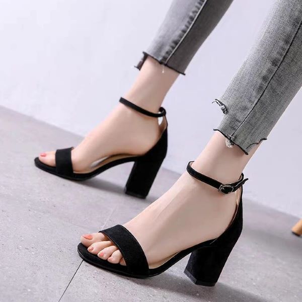 1. Giày sandal cao gót 7cm đế vuông quai trong mảnh