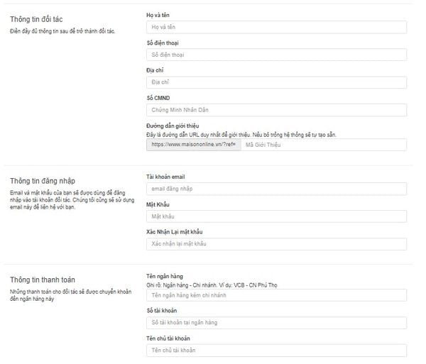 Bước 1: Cộng tác viên đăng ký tham gia chương trình tiếp thị liên kết của Maison Online