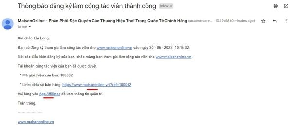 Bước 3: Cộng tác viên nhận thông báo đăng ký thành công và đăng nhập để lấy liên kết sản phẩm bán hàng.