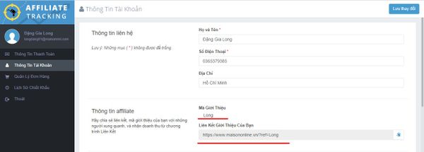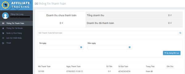 Cộng tác viên có thể kiểm tra thông tin thanh toán trong phần đăng nhập của mình.