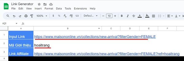 - Sử dụng Mini Tool từ Maison Online để gắn mã giới thiệu vào liên kết bán hàng bạn mong muốn.
